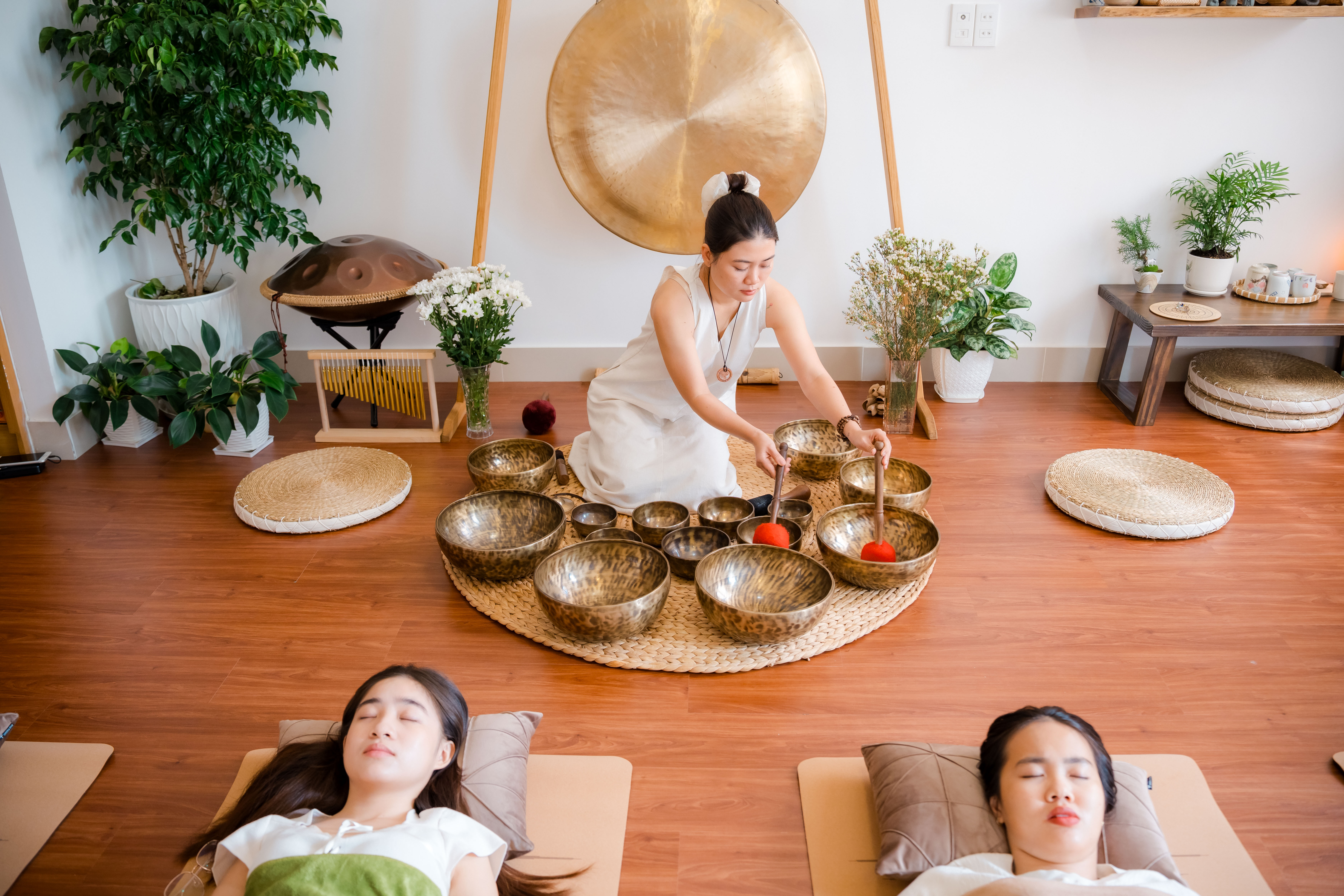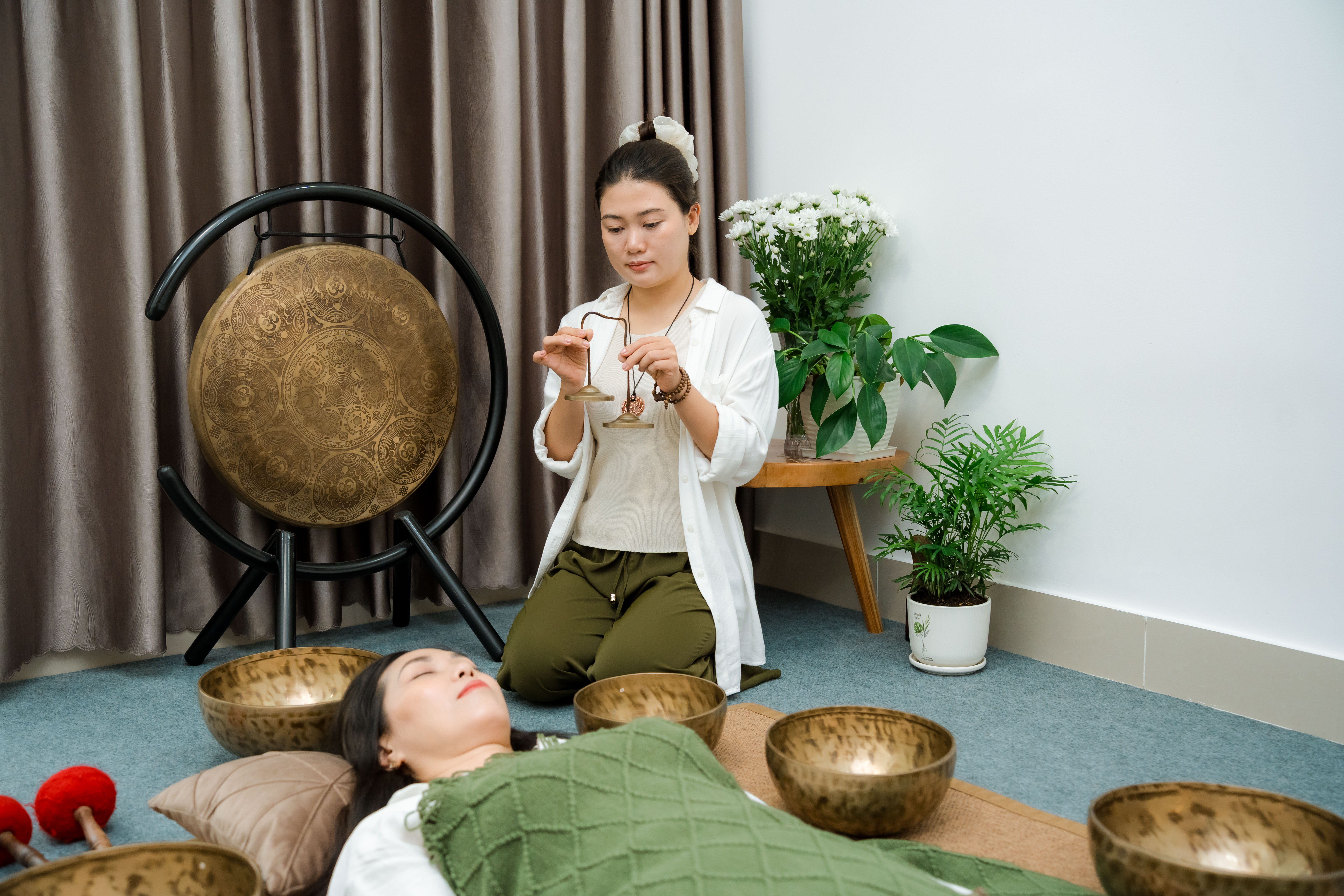 Trải nghiệm hành trình chữa lành trong không gian riêng tư, nơi bạn được kết nối sâu với cơ thể và tâm trí thông qua âm thanh và rung động cao của chuông xoay Himalaya, kết hợp cùng thiền dẫn trị liệu chuyên sâu. (Trị liệu 1:1 bằng Chuông Xoay Himalaya & Thiền dẫn trị liệu)
