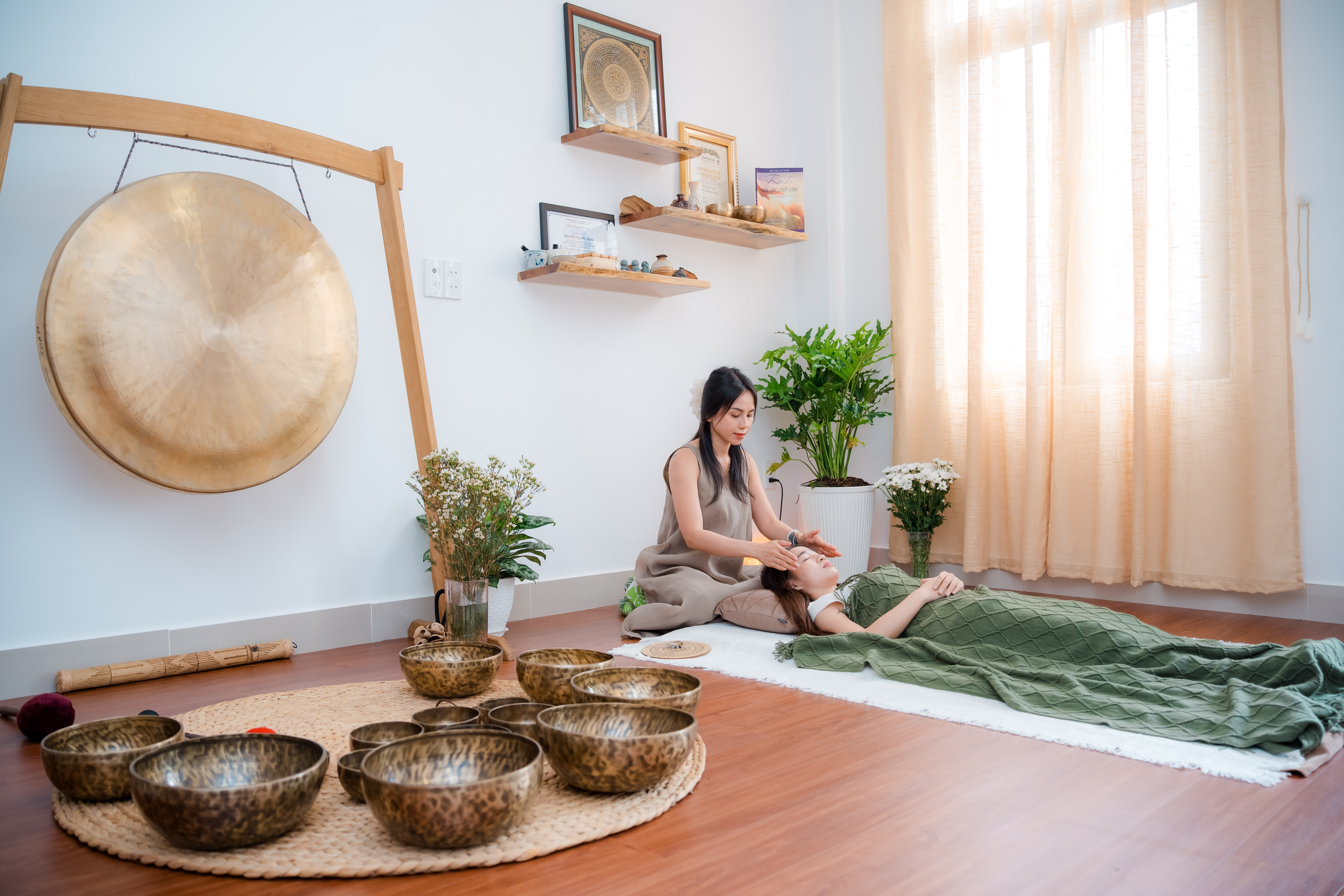 Trải nghiệm hành trình chữa lành trong không gian riêng tư, nơi bạn được kết nối sâu với cơ thể và tâm trí thông qua âm thanh và rung động cao của chuông xoay Himalaya, kết hợp cùng thiền dẫn trị liệu chuyên sâu. (Trị liệu 1:1 bằng Chuông Xoay Himalaya & Thiền dẫn trị liệu)
